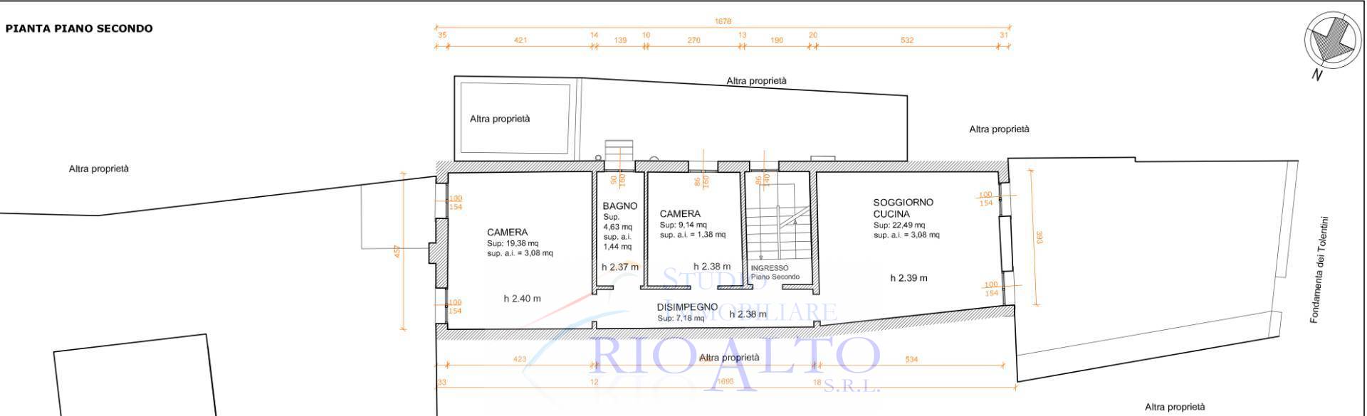 Piano secondo, appartamento composto da ingresso, soggiorno con angolo cottura, 2 camere e bagno finestrato;