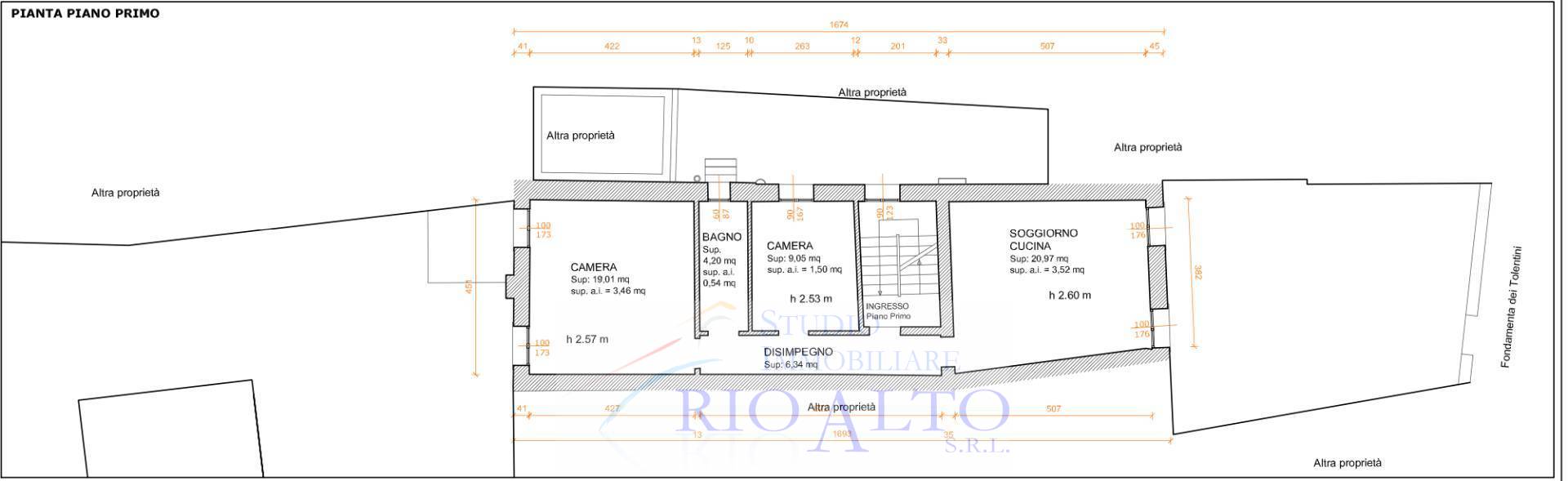 Piano primo, appartamento composto da ingresso, soggiorno con angolo cottura, 2 camere e bagno finestrato;