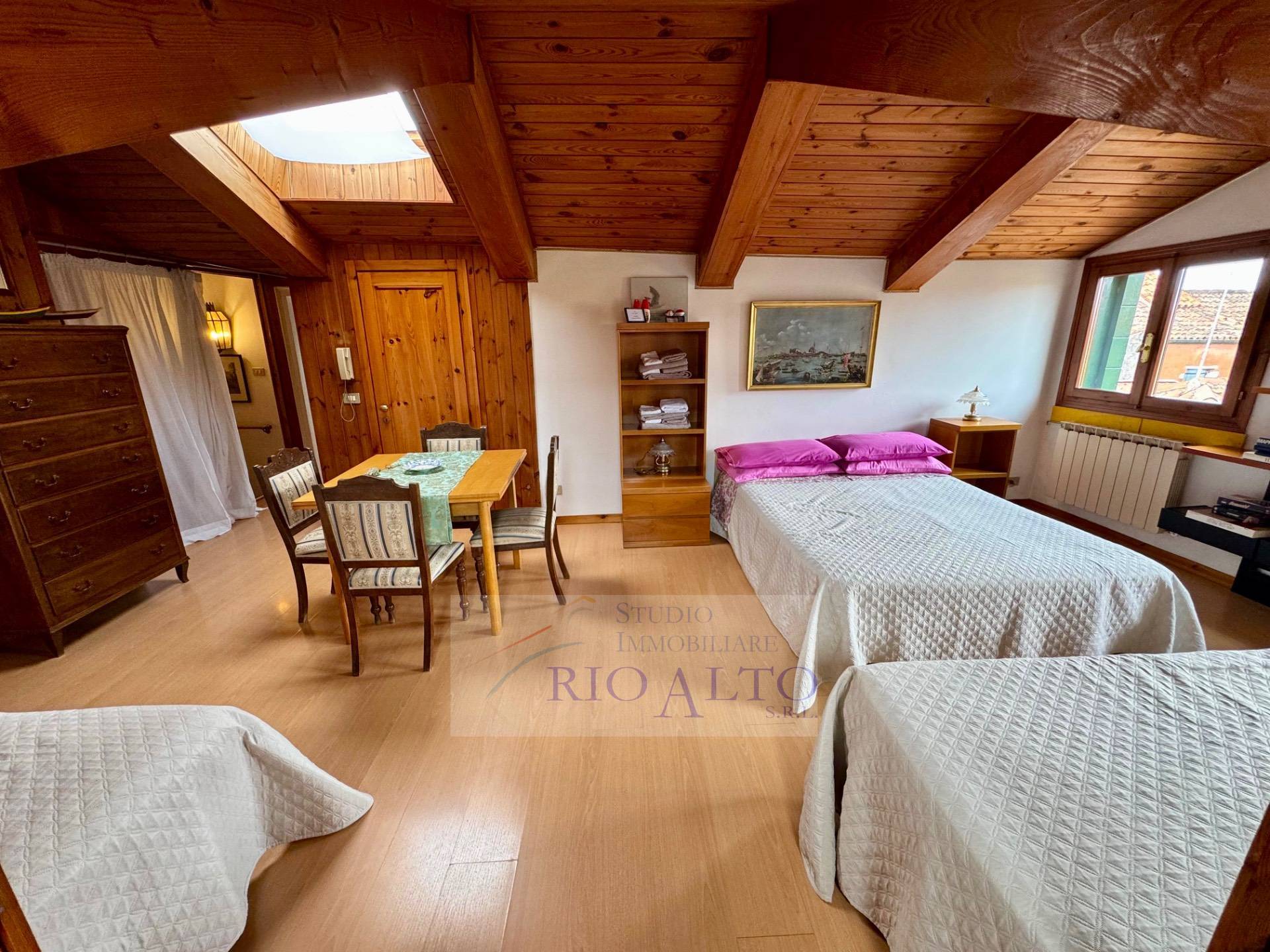 La proprietà che vi stiamo proponendo è caratterizzata da un sapore Veneziano unico dato dalle pavimentazioni in seminato, le travi lignee originali e, soprattutto, dalle viste panoramiche sui tetti e sulle mura dell'Arsenale.
